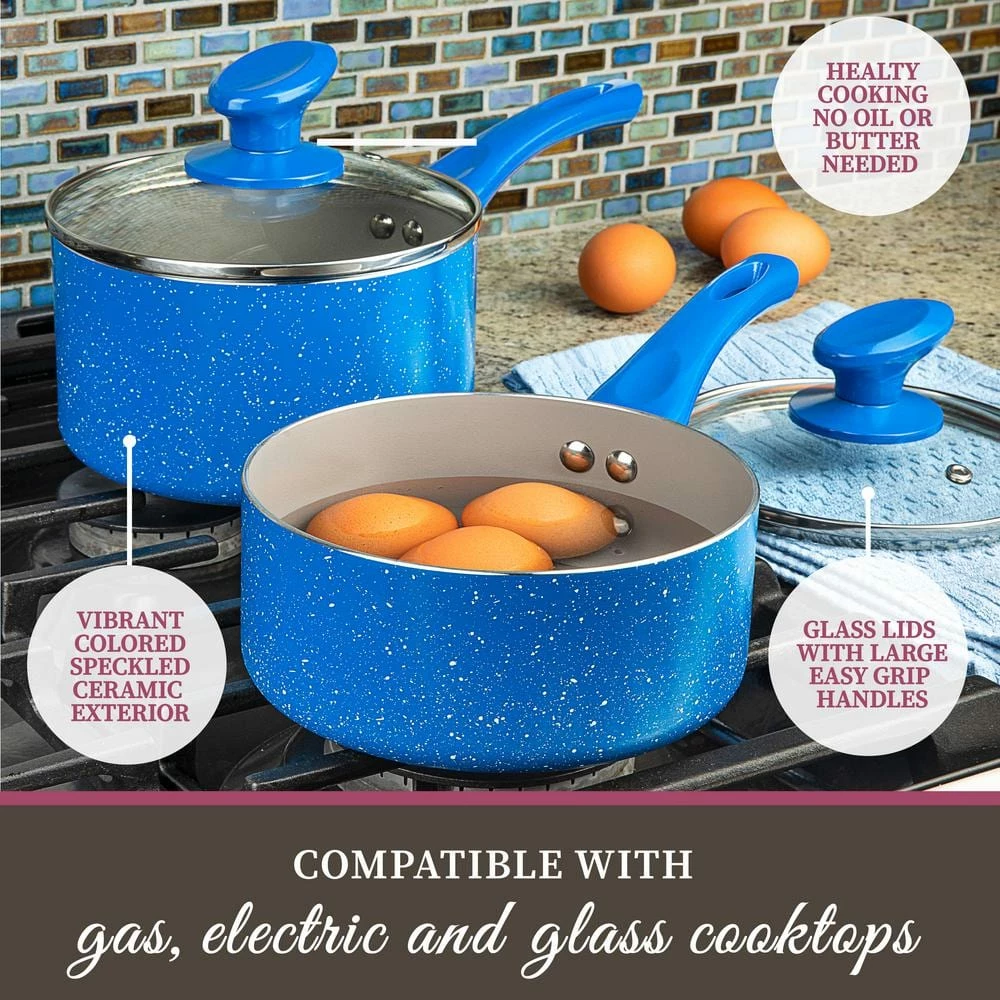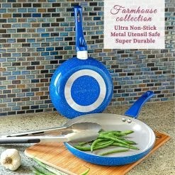 Upgrade your cookware collection with the modern performance of the Granite Stone Diamond Farmhouse Collection 13-Piece set. The Farmhouse Collection cookware features an unique and durable ceramic nonstick coating for effortless food release and cleanup. The pots and pans offer amazing heat distribution without dead zones or hot spots.