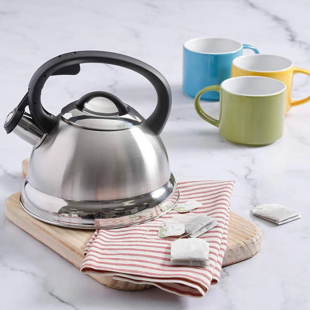 The Mr. Coffee Flintshire 1.75 Qt. Stainless Steel Whistling Tea Kettle is the perfect tea kettle to have for day to day use. Feel at ease to leave the water boil, while you get to do other things. The whistling tea kettle, will let you know when the water is boiled by the whistling sound that will make when its ready. Tend to your guests while the water is being boiled, and let the whistle from the kettle draw you back to the kitchen to prepare your favorite hot drink.