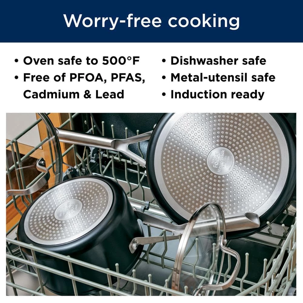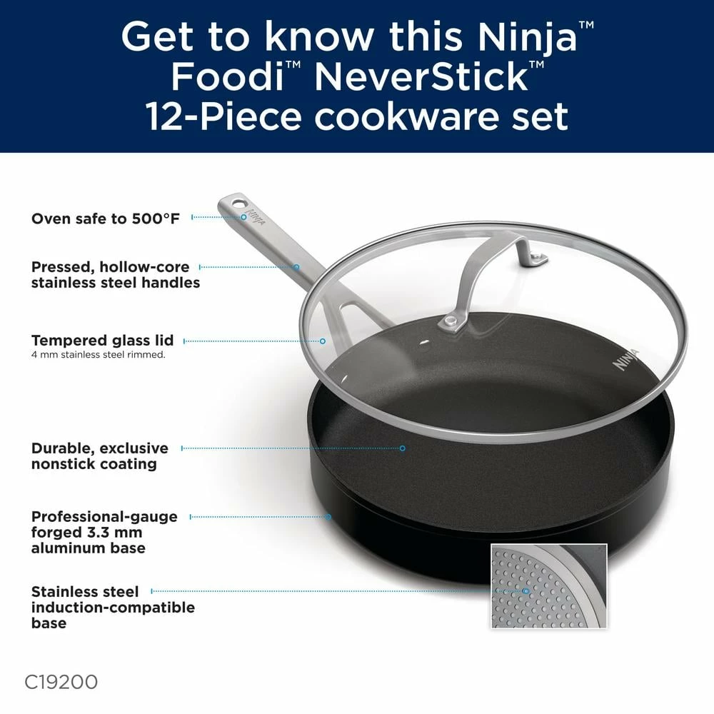 Ninja Foodi NeverStick Cookware is the cookware that won’t stick, chip, or flake. With a max manufacturing temperature of 30,000°F, our cookware won’t rapidly lose nonstick like traditional pans made at 900°F can. Designed to withstand high-heat cooking and aggressive scrubbing. Our exclusive coating is metal-utensil safe and dishwasher safe. This cookware has a glossy black exterior that is easy to clean. Oven safe to 500°F. All range capable: gas, electric, glass ceramic, and induction. Sear, saute, griddle, pan fry, bake, roast, broil. Fully backed by Ninja 10 Year Guarantee. *Use as directed.