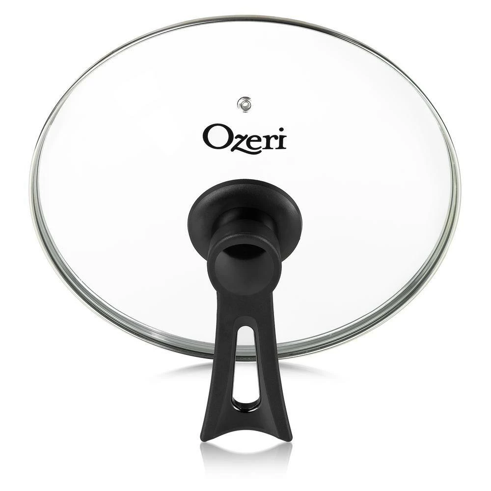 Introducing the new Ozeri Free-Standing Pan Lid with Tempered Glass. Exclusively designed for the Ozeri Collection of Ozeris Green Earth, Stone Earth and Stainless-Steel Earth Pans, these innovative lids stand vertically to save counter space when cooking, and eliminate the need for that much-needed third hand when stirring or serving. Made of professional-grade tempered glass with a built-in pressure release steam vent, and equipped with a heat-resistant Bakelite handle, each lid is oven-safe to 300°F (150°C) for the most demanding cooking and baking projects. Boasting transparent glass, the Ozeri Free-Standing lid lets you monitor your cooking progress without releasing heat or losing moisture, flavor or nutrients, allowing you to cook your dishes to perfection with ease. The Ozeri Free-Standing Pan Lid with Tempered Glass is 100% dishwasher-safe. Backed by Ozeris No-Hassle warranty, your satisfaction is guaranteed.