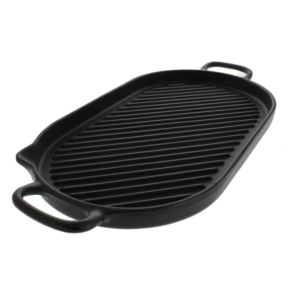 The Chasseur Oval Cast Iron Grill provides all the flavor of an outdoor grill, with all the convenience of indoor cooking. This grill pan is constructed of thick cast iron to maintain its temperatureduring cooking, making it ideal for grilling anytime. While cooking, ridges allow excess fat and grease to dra in. Easy to clean and easy to use, and with a beautiful black enamel coating, this grill pan is the perfect addition to any kitchen.