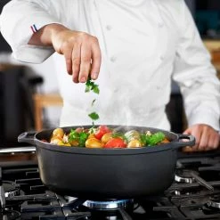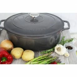 Made in France, Chasseur Dutch Ovens are perfect for cooking delicious roasts, poultry, soups and stews. It is valued for its versatility on all cooking surfaces, its even heating properties, energy saving and exceptional browning capability. Together with its longevity and the ease with which it can be cleaned make Chasseur enameled cast iron the best choice for cookware. Each Dutch Oven comes with a heavy cast iron lid to seal in flavors and taste and stainless steel knobs safe to 450°.