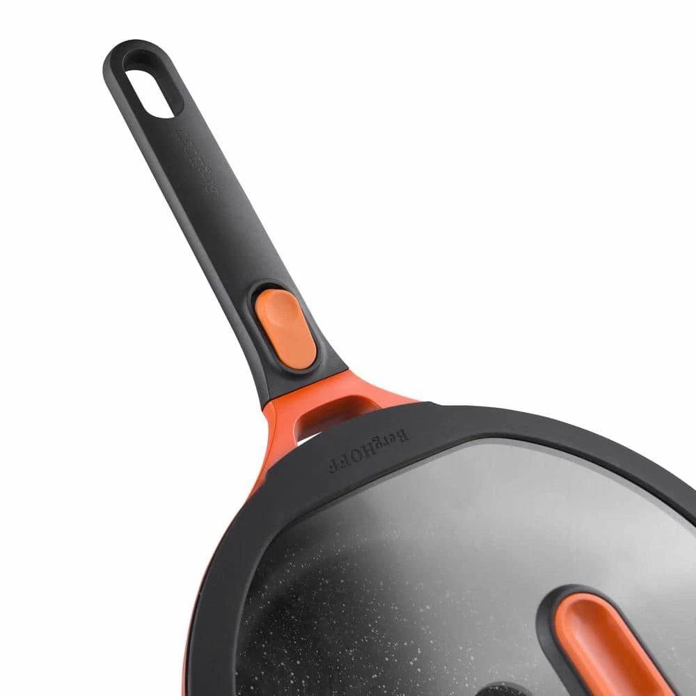 Give your sauces a chance to shine with this non-stick saut pan. The aluminum reacts quickly to temperature changes, from the heat you need to saut your meat or poultry to the gentle simmer for your pan sauce. Use it on any stovetop, put it in the oven or take it directly to the table with the easily detachable handle. Special pouring spouts align with holes on the lid to easily strain excess liquids.