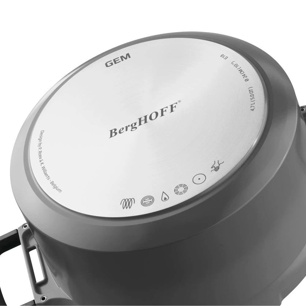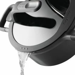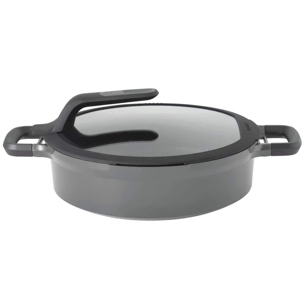 Got a frying, sauting or braising job to do? Then its time to get out this covered saut pan and work your magic on any kind of stovetop! Simply grab the stay-cool handles, add your ingredients to the aluminium body with high-quality non-stick coating and top the pan off with the matching lid that preserves the heat and moisture for energy-efficient cooking and an extra tasty result. When your food is ready you can either strain it with the different sized straining areas integrated in the lid or place the lid vertically on the pot so youve got your hands free to stir and serve. Suitable for all cooktops including induction. Inside dimensions: 11x11x3 / Outside dimensions: 16.25×11.5×5.5