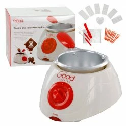 Good Cooking Chocolate Melting Pot are perfect melting, drizzling and dipping your favorite chocolate. Includes over 30 accessories, including 7 chocolate molds, fondue forks and more. Twelve recipes included so your favorite treats taste even better. The electric chocolate melting pot melts up to a cup of chocolate without water. Works with any kind of chocolate.