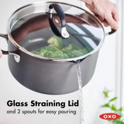 This pot from the OXO Good Grips Non-Stick collection is specially designed to make straining easy. A handy side spout and lid with variable sized holes helps you strain without worry. A 3-layer non-stick coating offers years of sticky-free performance.