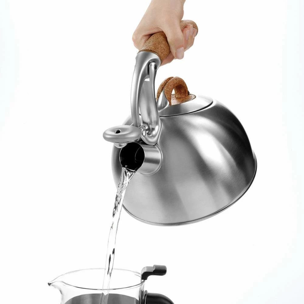 No more uncomfortable wrist maneuvers — simply lift the OXO Brew Uplift Tea Kettle by its handle to automatically open the spout. The spout stays in the open position for safe and precise pouring. This special 10th anniversary edition features a heat-resistant cork handle, high-grade, brushed stainless steel, and durable zinc finishes.