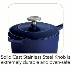 - Solid cast stainless steel knob is extremely durable and oven-safe