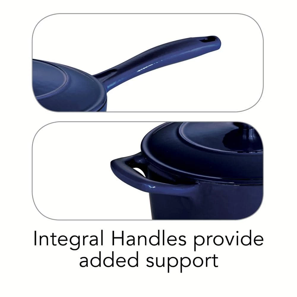 Just looking at Tramontina’s 2.5 Qt Enameled Cast-Iron Series 1000 Covered Sauce Pan conjures images and aromas of hearty sauces gently simmering on the stove. Your guests will love the mouth-watering flavors enhanced by the pan’s self-basting lid. Cooks will love everything else-from heat retention and even cooking, to a porcelain-enamel exterior finish that makes a elegant kitchen-to-table serving option, and sturdy side handles for easy manageability. Think beyond the stovetop and the oven. Pre-chill the cookware in the refrigerator to keeps food such as fruit and pasta salads cool during serving.