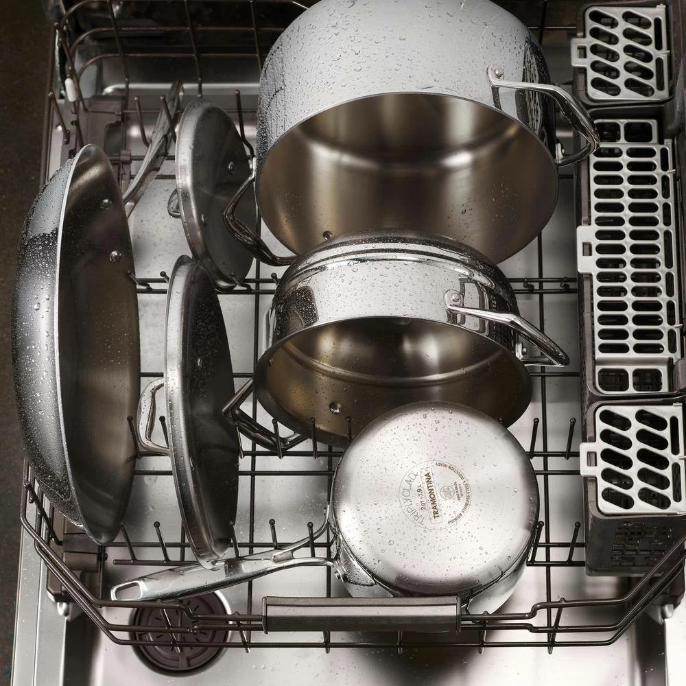 - Tri-ply clad construction (18/10 stainless steel, aluminum core, magnetic stainless steel)