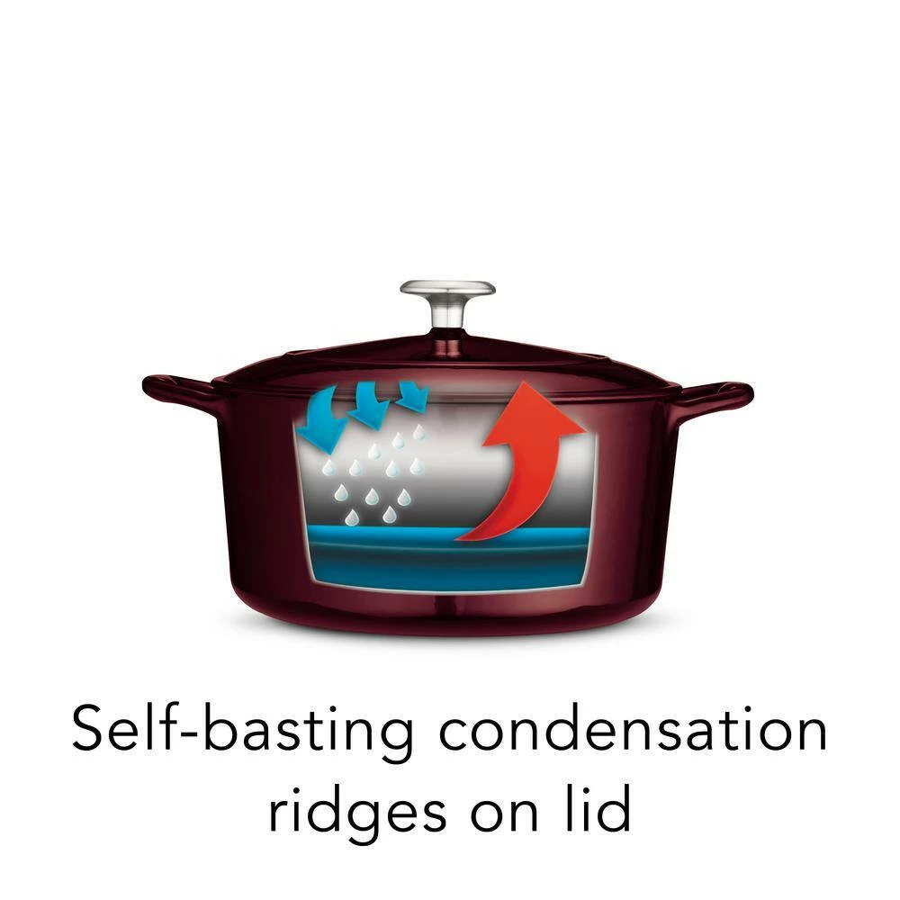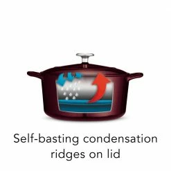 - Self-basting condensation ridges on lid uniformly collect and direct vapors onto food, producing moist and savory dishes