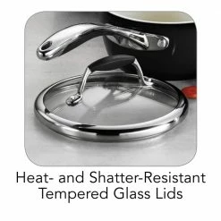 - Heat and shatter-resistant glass lids allow you to monitor cooking progress