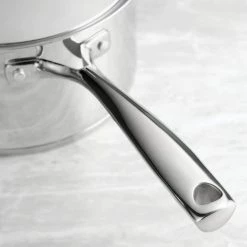 A sleek appearance, superior durability, and high performance make Tramontina’s Prima 1.5 Qt Covered Sauce Pan an essential addition to home and professional kitchens alike. Handy for cooking comfort soups and signature sauces for small parties, this one can be used on any cooktop – including induction – and in the oven. The Prima Sauce Pan is elegantly styled with a tri-ply base impact-bonded with a pure aluminum core between a layer of 18/10 stainless steel and a layer of magnetic stainless steel, providing even heat distribution. As an added detail, its modern lines feature a flared edge for easy and dripless pouring, a precision-fitted 18/10 stainless steel lid to lock in heat and nutrients, and cast stainless steel handles that are riveted for superior strength.