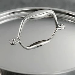 - Precision cast riveted handles and mirror-polished stainless-steel lid