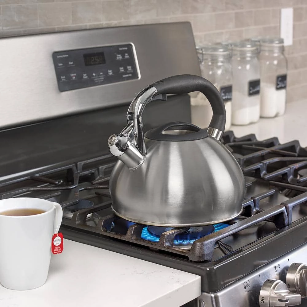 The fast heating and stylish Gumdrop Whistling Kettle in an attractive addition to any kitchen with its brushed stainless-steel design. This kettle features a non-slip handle and spout trigger. A great addition to your kitchen assortment.