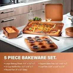 The Gotham Steel Hammered Collection is beautiful and makes a bold statement in every kitchen, yet practical – nonstick, lightweight, scratch resistant and dishwasher safe! Award winning coating ensures the ultimate easy release everything just slides right off the pan, no need for oil or butter – ever: set includes: 8.5 in. fry pan, 10.25 in. fry pan with lid, 1.5 qt. sauce pan with lid, 2.5 qt. sauce pan with lid, 5 qt. stock pot with lid, stainless steel steamer, cookie sheet, round baking pan, square baking pan, loaf pan, and muffin pan, 14 in. Family Pan with Glass lid – everything one needs to start cooking! Solid aluminum construction ensures even heat distribution all around Ultra-durable, scratch-proof & metal utensil safe Lightweight design makes for a comfortable cooking experience Oven safe up to 500° F, the pots and pans are suitable for all stovetops, including induction Dishwasher safe makes for effortless clean up Premium stay cool handles are cool to the touch Toxin free – All Gotham Steel products are PTHE, PFOA and PFOS free.
