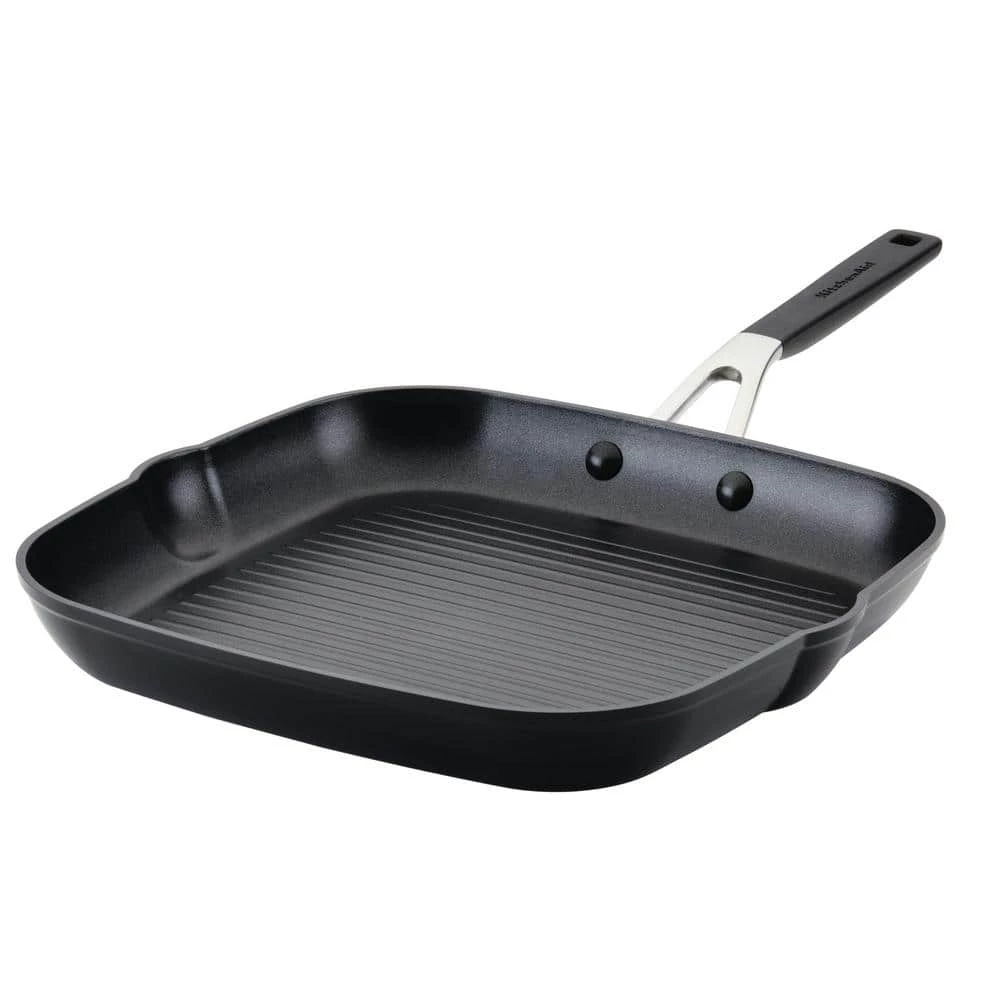 - Made for everyday cooking: KitchenAid square grill pan is crafted from durable hard anodized aluminum that is 6x harder than traditional aluminum for quick heat distribution and everyday use