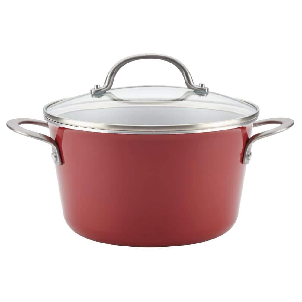 - EASY HANDLING SAUCEPOT: Double-riveted stainless steel handle is oven safe to 500 degrees F, shatter-resistant glass lid seals in heat and moisture