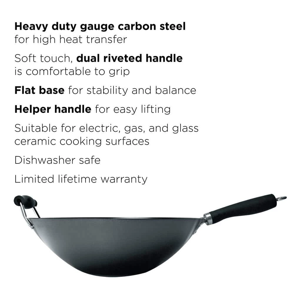 Made of carbon steel and nonstick interior coating this Wok is ideal for your cooking needs. It has a soft touch riveted handle making it easier to hold. non-stick is PFOA free so that it is better for the environment. Wok has a flat bottom for better balance and is suitable for all heat sources, including induction. After your purchase please consider how to recycle your old cookware. You can visit Ecolutionhome.com to get a listing of local charities to donate your cookware or ways to renew/ recycle your old pans, you know “the other stuff in your cabinet”. Ecolution believes that cooking well in the kitchen and doing good for the planet can happen at the same time. From our family of chefs to yours we say Cook Well. Do Good.