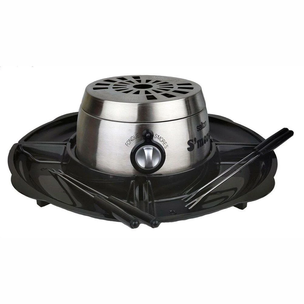Who said S’mores were for Summer? With the Salton Indoor Electric S’mores Maker, you can make your delicious treats indoors all year round.This exciting at-home s’mores maker includes 4 roasting forks for the family to roast marshmallows all year round. The indoor safe heating element has no open flame and is enclosed in stainless steel housing. A convenient serving tray has components for all your ingredients like graham crackers, chocolate, and marshmallows. The heating element will easily roast marshmallows in approximately 2 minutes but will vary on how toasty you prefer.Doubling as a fondue pot warmer, this versatile appliance will keep your fondue at an ideal consistency and temperature, fondue pot not included. Instead of s’mores ingredients, you can store yummy snacks for your fondue in the serving tray and enjoy a family fondue night.Gather around for s’mores or fondue and any time of the year thanks to the Indoor Electric S’more and Fondue Maker by Salton.