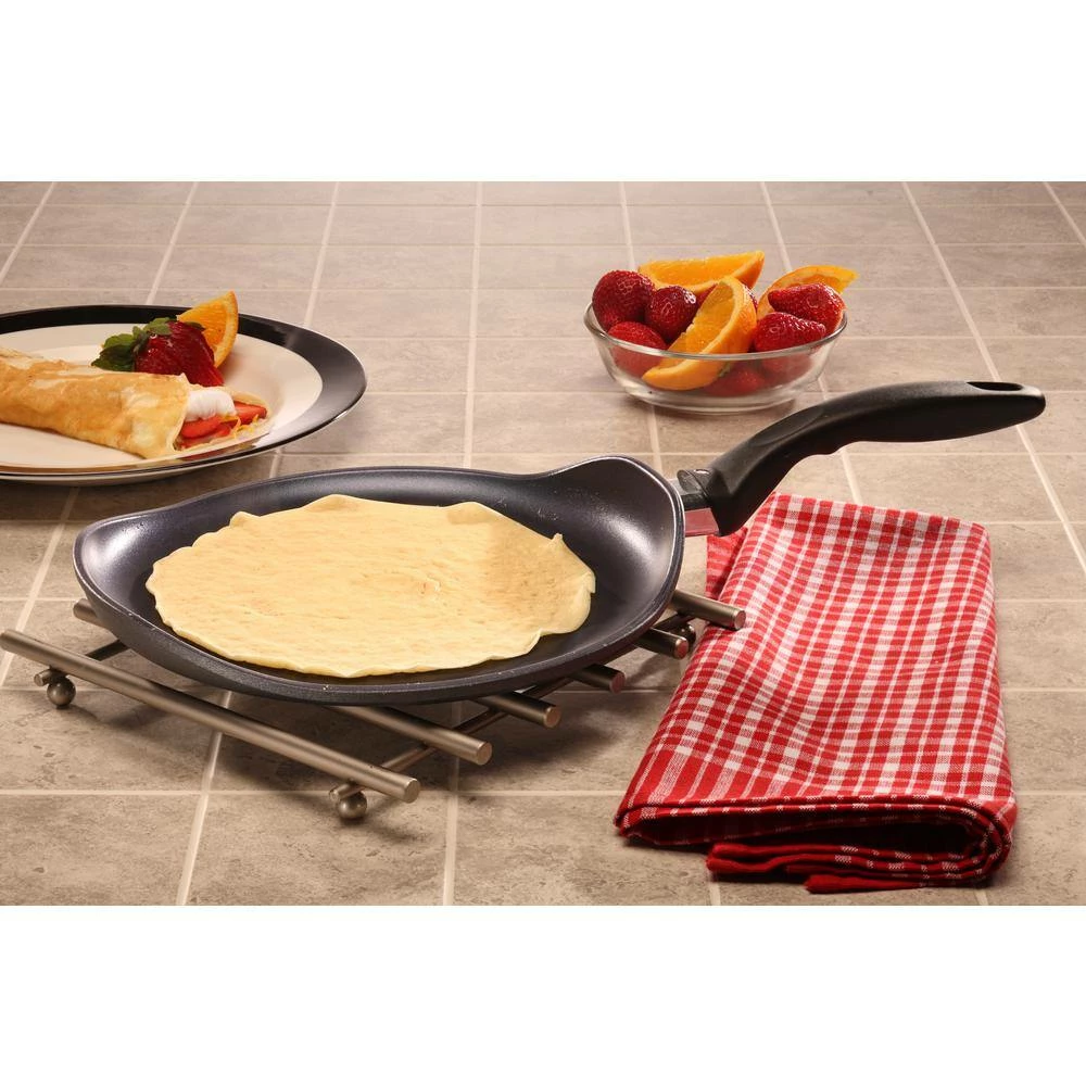 Whether you wrap them around sweet or savory fillings, crepes transform breakfast into a special occasion. The 10.25 in. (26 cm) Swiss Diamond Induction Crepe Pan is perfect for creating delicious pancakes and fluffy omelets. Flipping, folding over, and presenting your creation to a host of hungry morning monsters, or the sleepover crowd on the weekend, has never been this simple thanks to the sloping sidewall.