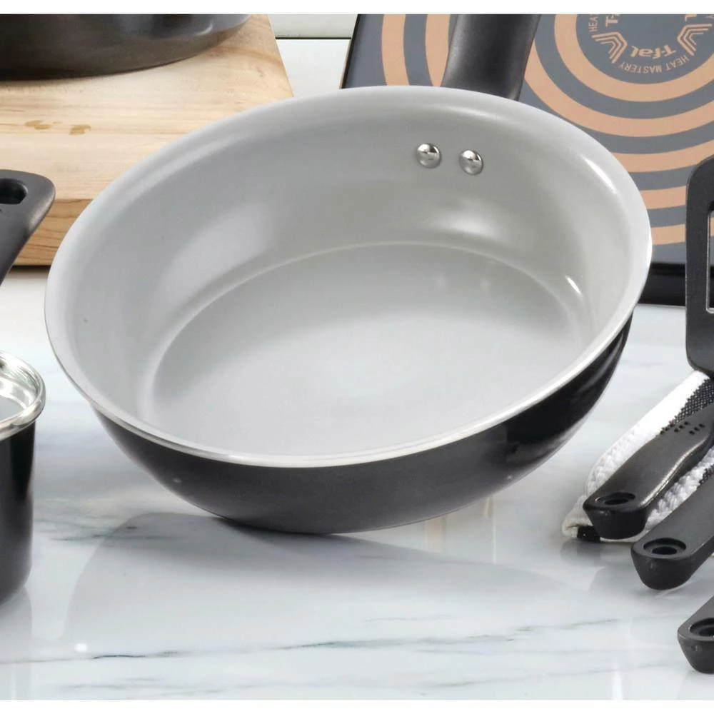 T-fal Initiatiaves Ceramic cookware has a new, beautiful grey cooking surface and still makes it easier than ever to cook healthier, nutritious and delicious meals at home. The cookware’s heavy-gauge aluminum construction and even heat base offer durable strength, efficient cooking and even heat distribution for reliably consistent results. Recyclable and PTFE-, PFOA-, and Cadmium-free, the cookware’s innovative grey ceramic nonstick interior provides easy food release with just a little oil and can handle high cooking-surface temperatures up to 570°F-perfect for searing meat, fish, poultry, and more to delicious perfection. The ultra durable ceramic interior resists scratches and staining, ensuring high quality performance and long lasting good looks. Ergonomically designed heat resistant handles provide a comfortable and secure grip and are oven safe to 350°F (use an oven mitt), while vented, tempered-glass lids offer at-a-glance monitoring. Dishwasher safe, the cookware cleans up in a flash-no messy overnight soaking required. With its high gloss exterior and beautiful grey interior, T-fal Initiatives Ceramic cookware makes a great gift idea for newlyweds, new homeowners, or anyone looking for a durable and stylish collection.