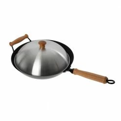 Asian cooking made easy with this 10-Piece Non-Stick Wok Set. Whether you’re prepping for tempura, stir-fry or steaming, delicious Asian cuisine is within reach. The centerpiece of this set is a 14 in. carbon steel non-stick wok with maple wood handles that is tough enough to use with metal utensils. The set also includes high dome lid, tempura rack, steaming rack, bamboo rice paddle, 12 in. bamboo spatula, 12 in. bamboo tongs, bamboo cooking chopsticks and 6-pair of bamboo table chopsticks. A recipe and care instructions booklet will have you whipping up stir-fry in no time, and providing long-term care tips for the wok set.