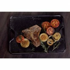 - Versatile and multipurpose the cast iron griddle grill its great for hamburgers steaks corn pancakes hibachi tortillas veggies fajitas meats and even indoor grilling