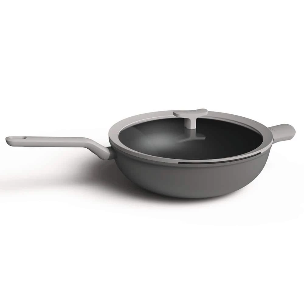 If you’re in love with the smell of a good stir-fry, then you’ll fall for this user-friendly stir fry pan in no time. The pan’s aluminum body ensures a fast and even heat distribution for a perfect fry on any kind of stovetop and is covered with a high-quality non-stick coating that allows you to cook with little to no fat. Tossing the ingredients in the pan is a piece of cake thanks to the soft-touch stay-cool handle, just like keeping the food warm and even straining it by means of the clear glass lid with integrated straining function.