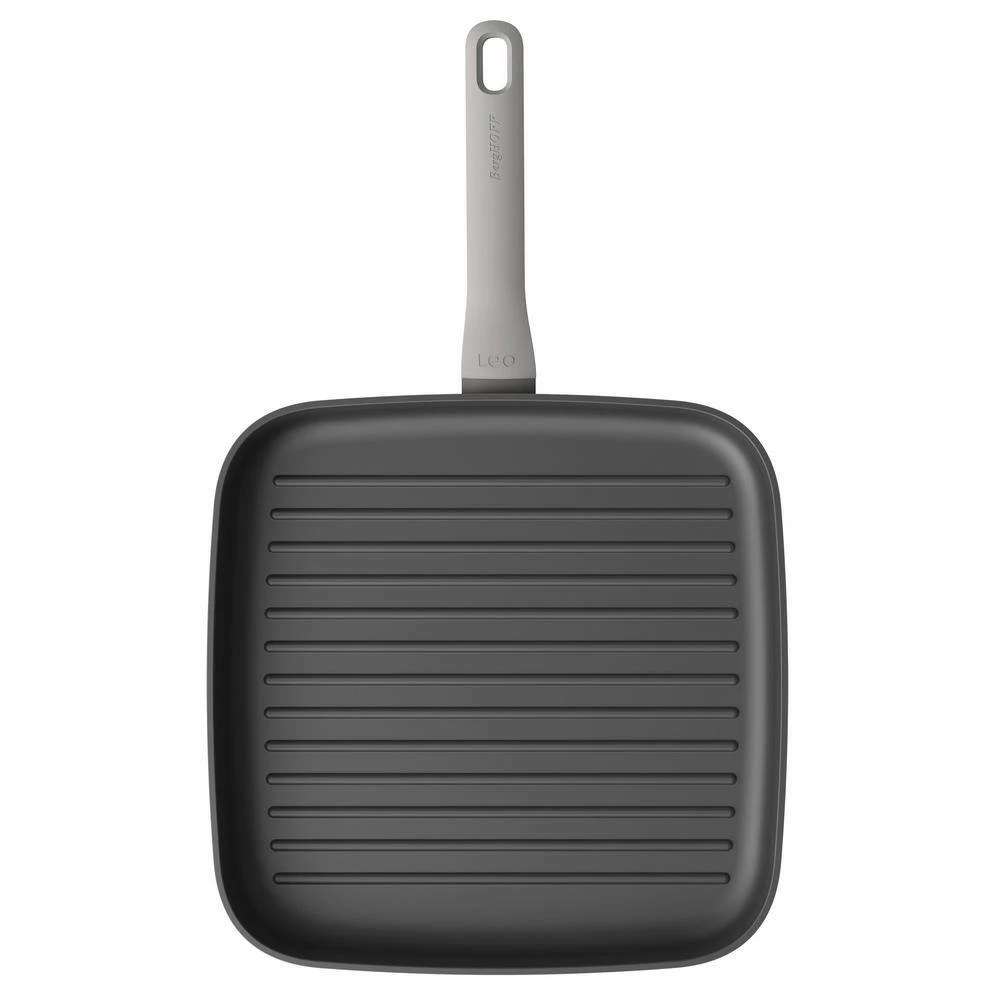 A couple of perfectly seared steaks, fish filets or a variety of vegetables, it’s a piece of cake with this 11 in. grill pan. It’s made from robust, yet lightweight aluminum and can be used on any kind of stovetop, including induction. The grill pan’s stay-cool handle ensures a comfortable and safe grip while the raised grill lines leave those typical grill marks and allow any fat and moisture to escape easily so you get that extra crispy result. An added bonus is the high-quality non-stick coating that guarantees an easy food release and makes the clean-up a breeze. Leo Frypans/ Grill: body 3.3 mm/ Induction Bottom 3.6 mm.