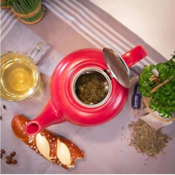 Timeless design teapot comes complete with stainless steel infuser insert. Ceramic and stainless are inert and therefore will not influence your tea’s fine taste. Large 1.6 qt. capacity for 8-cups. Dishwasher safe.
