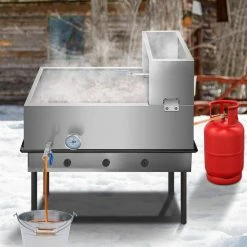 - Effective water tank: the water tank design increases efficiency and ease-of-use by allowing the user to keep a trickle of raw sap flowing into the main boiling pan at all time