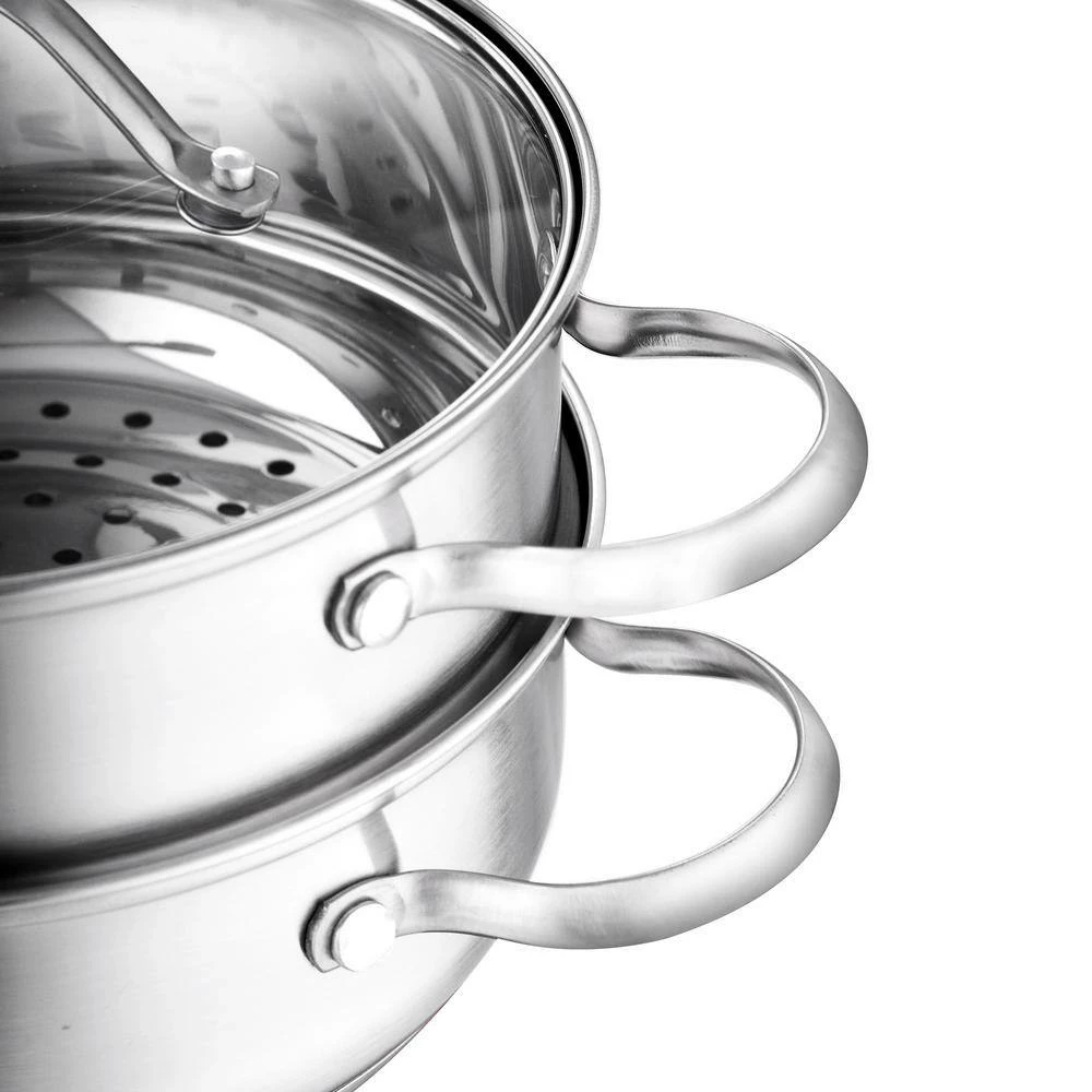 - Stainless-steel lids: secure-fitting lids trap heat for more efficient cooking, plus help seal in juices, nutrients, and flavor of food, and glass cover has a vent to release excess water