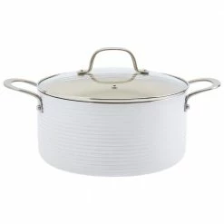 The 10-Piece non-stick aluminum cookware set from Denmark Tools for Cooks is beautifully designed and has been carefully crafted to uphold the stellar performance expected from high-quality cookware. This set couples superb non-stick coating with a durable aluminum construction that is ideal for daily use in high-traffic kitchens. The 10-Piece set includes everything necessary for a complete cookware collection. PFOA-Free non-stick coating provides incredible food release while easy to clean interior and exterior. Ergonomically designed handles provide a comfortable grip, tempered glass lids allow you to monitor the food without disturbing the cooking process.