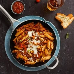 Take your cooking up a notch with the Oster Palladium 4.8 Quart Aluminum Saute Pan with Glass Lid. This essential kitchen tool is crafted from heavy gauge aluminum for durability, double-riveted stainless steel handles to stay cool while cooking, and a vented tempered glass lid for easy monitoring. The saute pan also comes built with an induction ready base, making it safe for all stove-tops. Use the pan to create stuff chicken breasts, shrimp scampi, or stir fry for the family to enjoy.