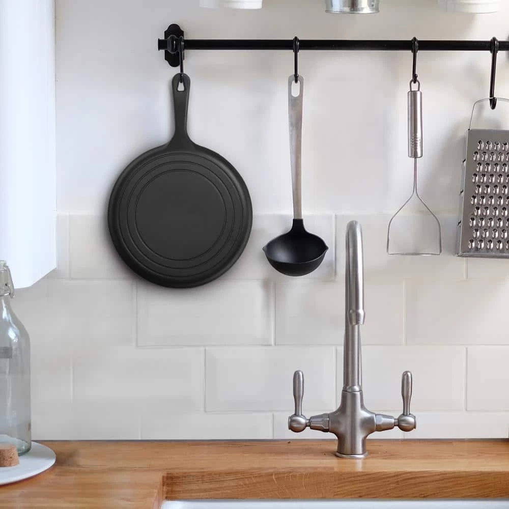 Cook up a storm both at home and outdoors with COMMERCIAL CHEF’s 10.5 in. round cast iron griddle. Tired of those unreliable and flimsy cooking pans that don’t showcase your skills. Get a cast iron pan that’s able to withstand your true cooking capabilities. This cast iron griddle helps bring out the full flavors of your signature dishes anywhere with ease and is ideal for indoors as well as outdoors. It’s built to last for years and truly withstand the test of time. No matter whether you’re an occasional cook or a verified kitchen stalwart, this seasoned cast iron griddle (15.9 in. x 10.6 in. x 0.7 in. ) will be with you all the way. Simply handwash with gentle detergent, dry thoroughly with a towel. This cast iron pan (4.2 lbs.) is equipped with uniform handle holes so you can easily stack them and hang on your kitchen wall or camping gear.