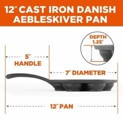 Make the best Danish pancake puffs ever with COMMERCIAL CHEF’s cast iron aebleskiver pan. Bored of the same old flat pancakes. Make ’em how they’re supposed to be-light and fluffy and utterly delicious. The 7-inch cast iron (3.1 lbs.) heavy-duty construction of this aebleskiver pan is built to last through even the most intense cooking challenges. The cast iron material heats thoroughly and evenly so you can make delectable puffs every time. Enjoy an easy-release cooking surface with even heat distribution so you can devise your favorite recipes. Cook over a gas stove, a broiler, in the oven or even outside on a campfire. This cast iron cookware can withstand real heat. You can make classic pancake puffs or delicious Japanese Takoyaki. Say goodbye to scraping burnt batter, this cast iron aebleskiver maker can be cleaned just by handwashing with gentle detergent and drying thoroughly with a towel. Make sure to dry thoroughly with a towel. Product Specification: Pan Length: 12 in. Pan Diameter: 7 in. Handle Length: 5 in. Mold Diameter: 2 in. Mold Depth: 0.75 in. Whether you’re craving for traditional Danish sweets or want to make your own version of a Japanese snack, our COMMERCIAL CHEF Cast Iron Aebleskiver Pan has your back.