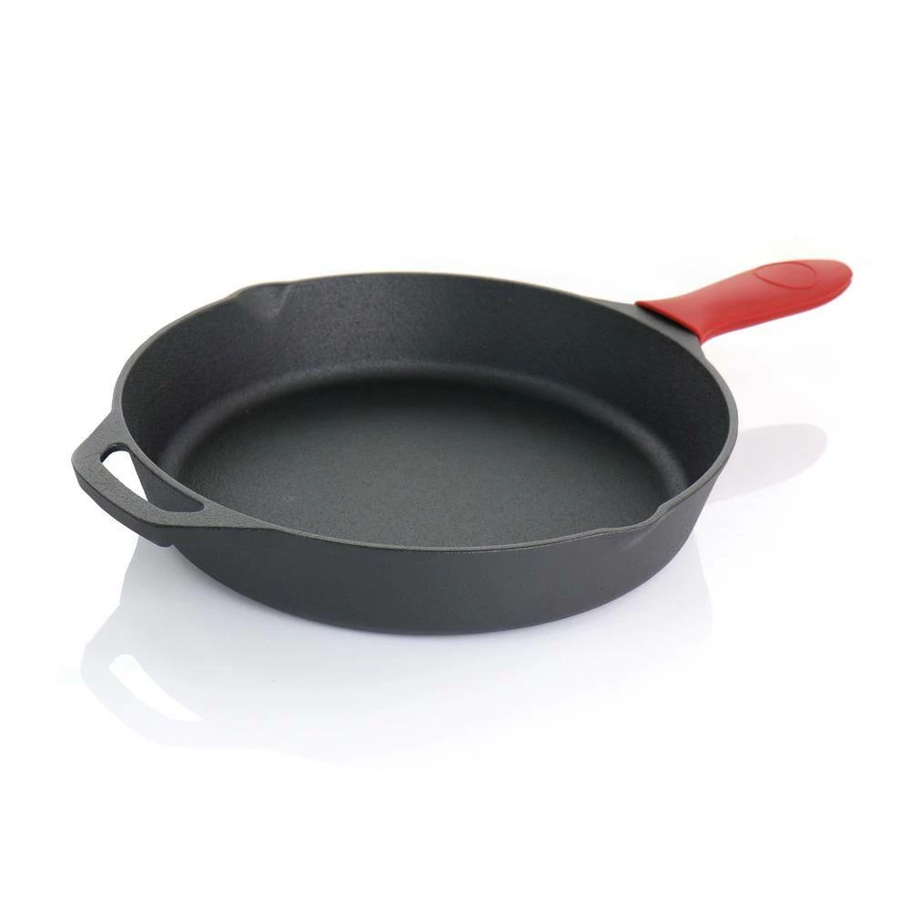 The MegaChef 9-Piece Cast Iron Skillet Set with Lids and Red Silicone Holder is perfect for sauteing, searing, pan-frying, baking, broiling and roasting all your favorite meals. With the lifelong durability and versatility, the cast iron skillets combine rich heritage with modern needs. Offering a healthier alternative to nonstick skillets, the cast iron distributes heat evenly for a more flavorful dining experience. This cookware also moves seamlessly from the refrigerator to the stove-top or oven to the table for easy serving.