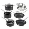 - Set includes – 8 in. skillet, 10 in. fry pan, 12. 5 in. fry pan, 1.5-qt. sauce pan with lid, 2.5 qt. sauce pan with lid, 3-qt. chef’s pan with lid, 3-qt. saute pan with lid, 6-quart stock pot with lid