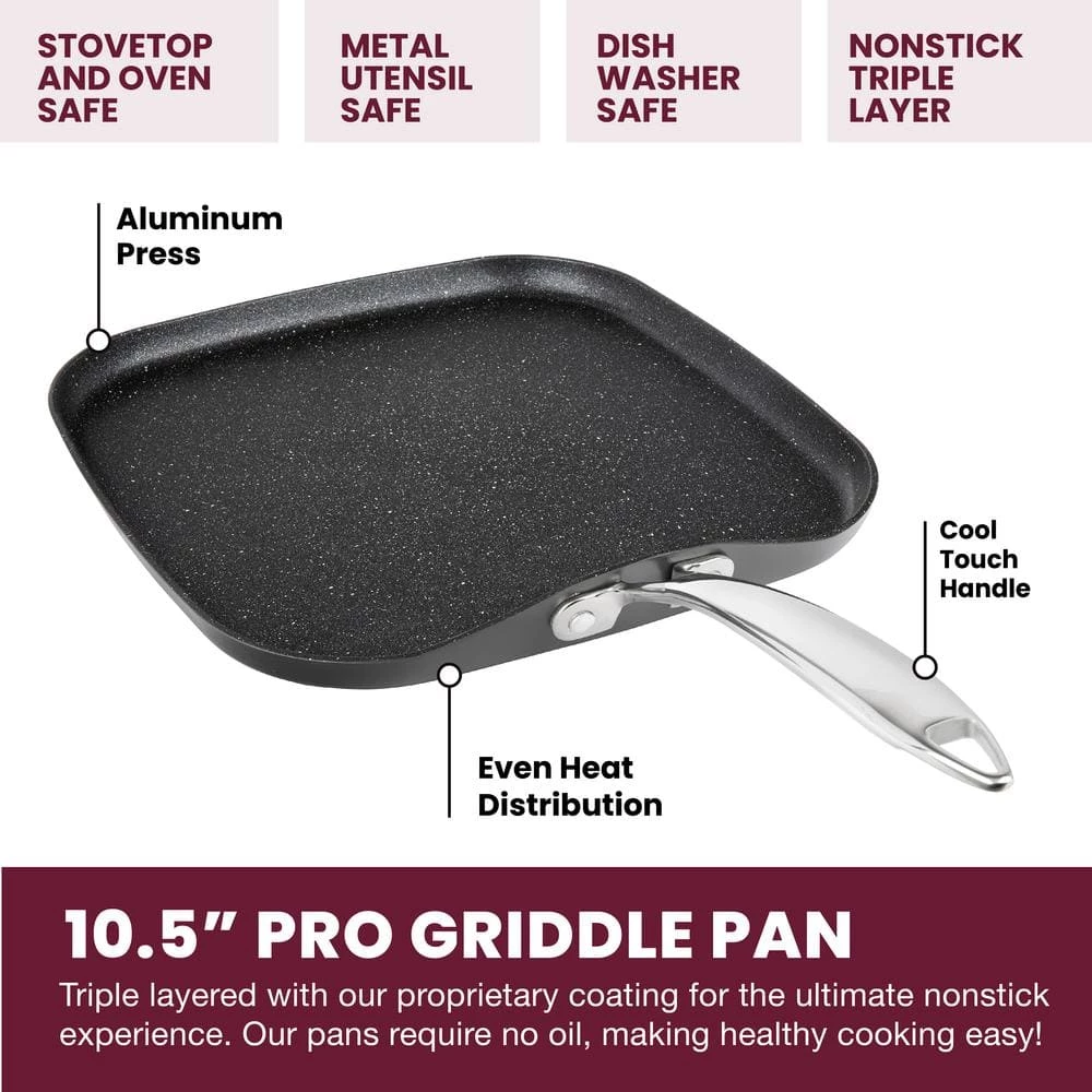 - Ultra-nonstick – the ultra-nonstick ceramic coating is reinforced with titanium and delivers the ultimate food release – no oil or butter needed makes for healthier eating, and provides for hassle free, easy cleanup