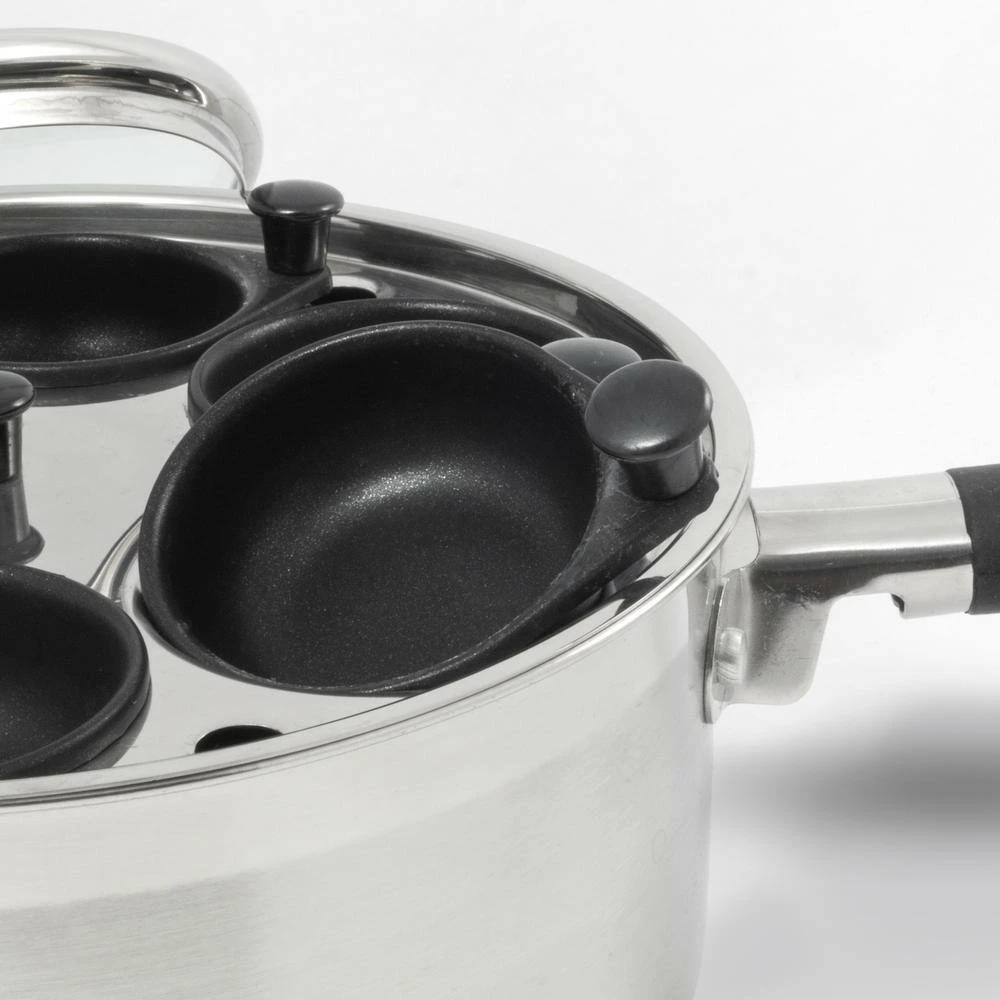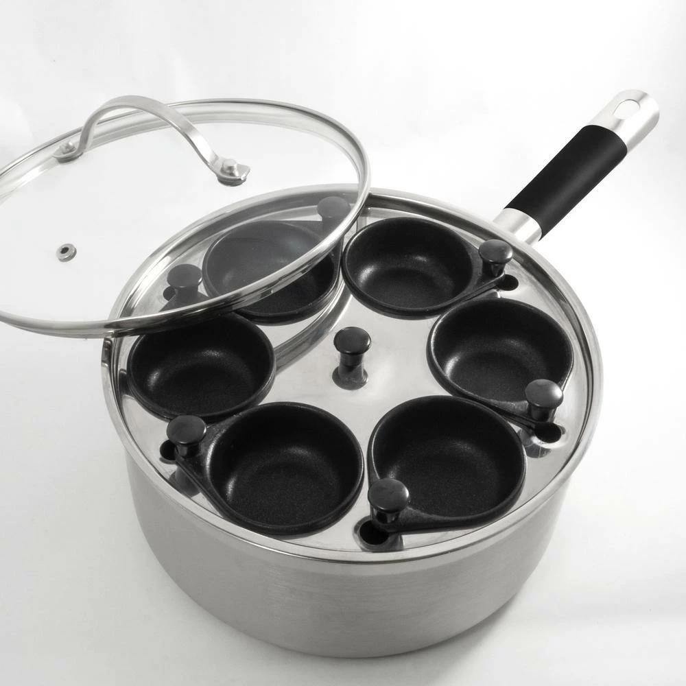 This professional stainless steel egg poacher with non-stick coated egg cups, is perfect for preparing that Sunday brunch. Invite your friends and family over for perfectly poached eggs. Features stay cool handle and knob and a vented glass lid for easy monitoring.