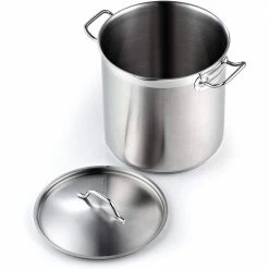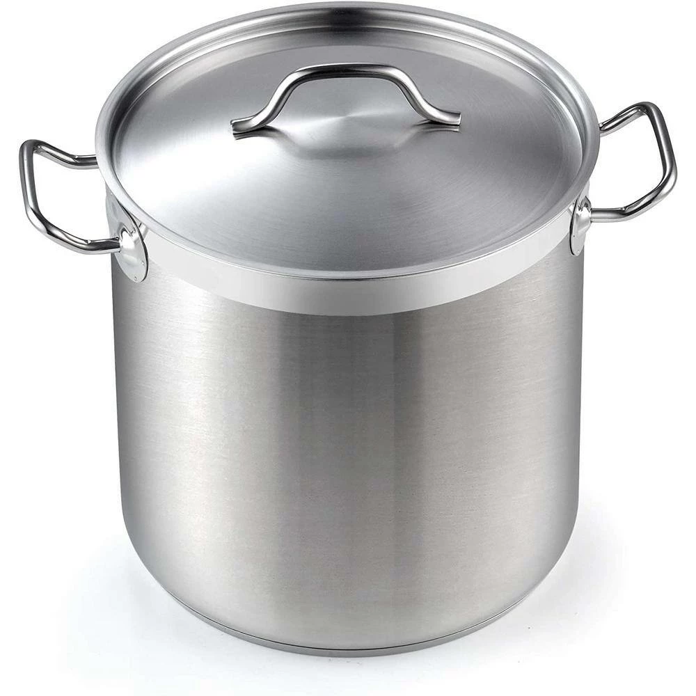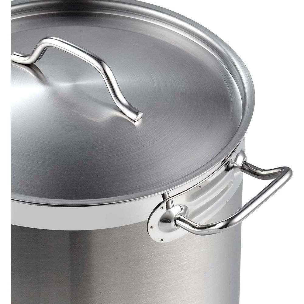 The Cooks-standard 11 qt. stainless steel professional grade stockpot with lid is made with Brushed 18/10 stainless steel inside and out With an aluminum disc layered in the bottom. Stainless steel is heavy duty, Easy to clean, and looks great. The aluminum disc capsuled bottom provides even/quick temperature distribution and prevents hot spots. Solid stainless steel lid keeps heat and moisture for long boiling/stocks and creates a seal. Wide and deep stainless steel handles offer durability and stay cool/comfortable for carrying. Tapered lip for drip-free/balanced pouring and keeps contents in. Large size for multipurpose function: canning, jarring, and stewing. Induction compatible. Works on gas, electric, glass, ceramic, halogen, etc. Oven safe to 500F. Dishwasher safe. Measures: 13 in. Length, 10 in. Width, 10 in. Height, and 5. 25 lb.