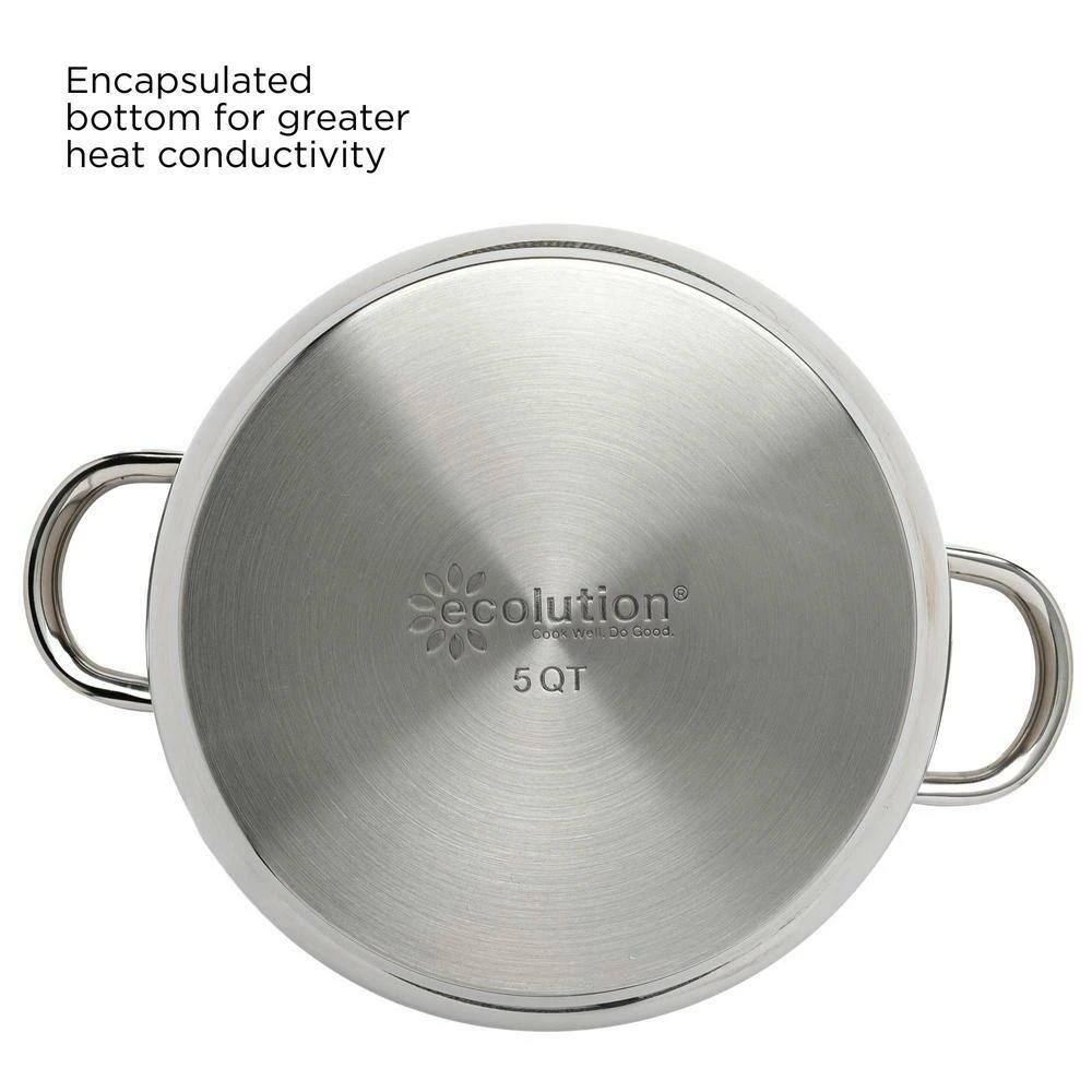 Ecolution Pure Intentions Stainless Steel 5 Qt. Dutch Oven with Glass Lid. We have a huge eco. Eco is part of our name and our products. If you share a genuine concern for the planet, we have something in common. We believe that cooking well in the kitchen and doing good for the planet can happen at the same time. We have been selling cookware for generations. From our family to yours, we say cook well. Do good.