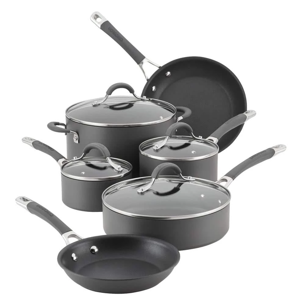 Energize the kitchen for cooking performance and dishwasher-safe convenience using the versatile, efficient Circulon Radiance Hard-Anodized Nonstick 10-Piece Cookware Set. Circulon Radiance is engineered with superior nonstick technology and time- and energy-saving dishwasher-safe convenience. Heavy-gauge hard-anodized cookware construction provides balanced heating for every cooking technique, from a quick weekend lunch for the kids to a slowly simmered, succulent one-pot stew. The sturdy cookware handles provide comfortable, confident handholds, and are dual-riveted for added support. Shatter-resistant glass lids on the covered pieces allow cooking to be monitored while sealing in heat and moisture. Cookware surfaces boast the TOTAL Nonstick System of raised circles and PFOA-free, metal utensil safe nonstick for natural food release and easy cleanup that lasts 10 times longer than normal nonsticks. From the saucepans to skillets, saute to stockpot, every cookware piece features this unique surface, delivering effortless food release and resistance to scratching, staining, and chipping. Best of all, Radiance cookware is dishwasher safe for the ultimate in convenient cleanup. Oven safe to 400°F and compatible with all stovetops except induction. Move forward to the next level of kitchen convenience with the proficient, dishwasher-safe Circulon Radiance Hard-Anodized Aluminum Nonstick 10-Piece Cookware Set.