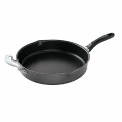 Great for family cooking, Rangeware 12 in. Texas Skillet is composed of heavyweight aluminized steel for fast and even heating. Skillet performs well on glass, gas or induction stoves. Durable porcelain enamel exterior with nonstick interior for easy cleanup.