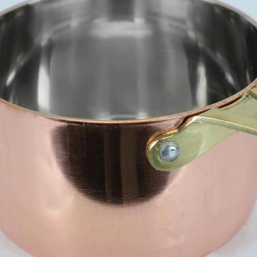 - Charming sauce pan is silver and copper, so it looks elegant on any table