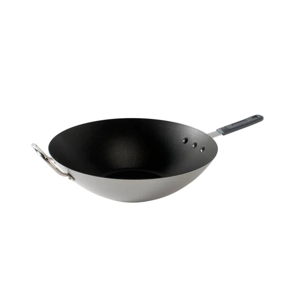 14 in. Restaurant Wok is constructed of authentic spun aluminized steel–it will never rust. Removable silicone grip allows for oven and broiler use. Heavyweight nonstick aluminum pan is made to withstand the rigors of a commercial kitchen, while exhibiting some of the finest cooking properties available. Premium PFOA-free nonstick surface. Certified for restaurant use by NSF International. 10 year warranty.