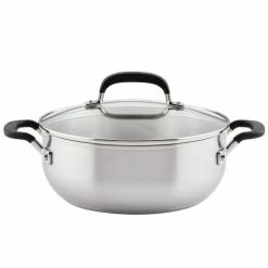 Ignite kitchen creativity and experience rich flavor with the KitchenAid Stainless Steel Casserole with Lid. Crafted from durable stainless steel with a layer of heat-conductive aluminum in the base, this versatile pot is designed to heat quickly and evenly to braise, slow cook, and saute with ease. This 4-quart casserole comes with a tempered glass lid to easily lock in heat, drawing out rich flavors when cooking short ribs, cassoulets, and other one pot meal favorites. Stainless steel handles have been finished with silicone grips for a cooler handle while cooking, when compared to traditional stainless steel handles, making it easier to present your creations table side. Dishwasher safe for quick, easy cleanup and oven safe to 400°F (350°F with lids) for making a wide range of delicious recipes.