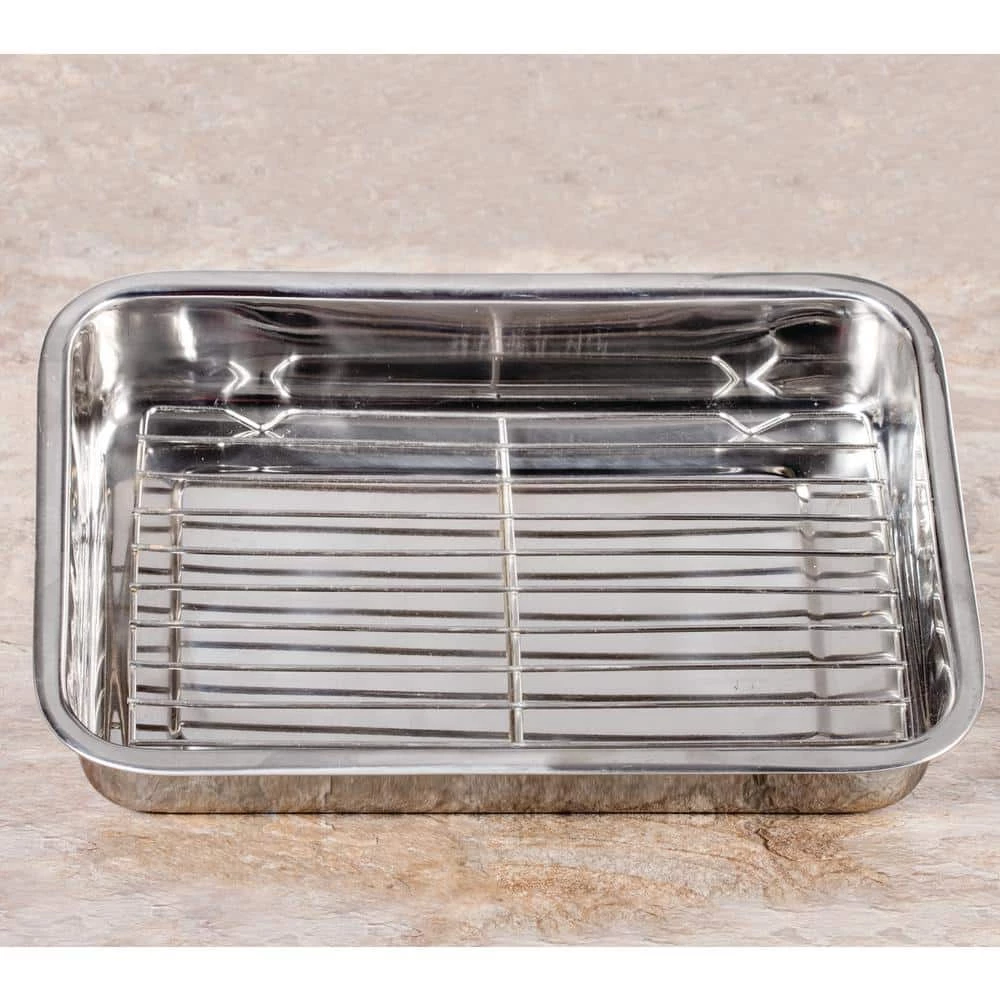 - STEEL RACK: The stainless steel roasting rack elevates food for even heating and collecting juices.