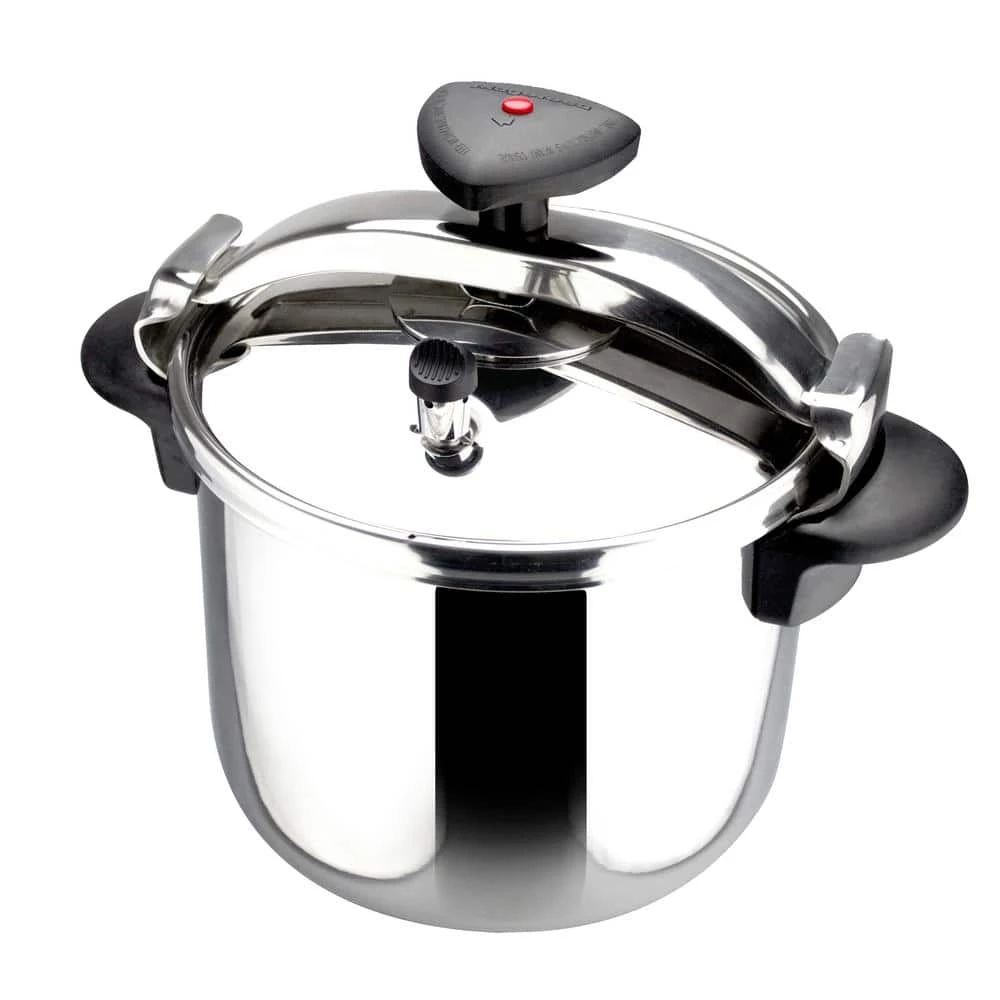 Star 8 Qt. pressure cooker is made of 18/10 stainless steel for long lasting durability. This 8 Qt. size is perfect for a 6 meals. And don´t worry: cooking time is reduced by up to 70%, resulting in less energy used and more money saved.